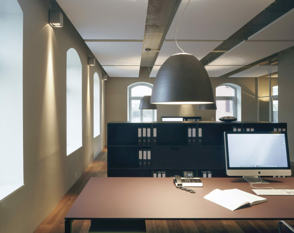 Für den befreundeten Landschaftsarchitekten Benedikt Stähli wurden im Erdgeschoss neue Büroräumlichkeiten geplant und gebaut. Nebst einem offenen Raumgefüge wurde eine wohnliche und warme Raumatmosphäre angestrebt.