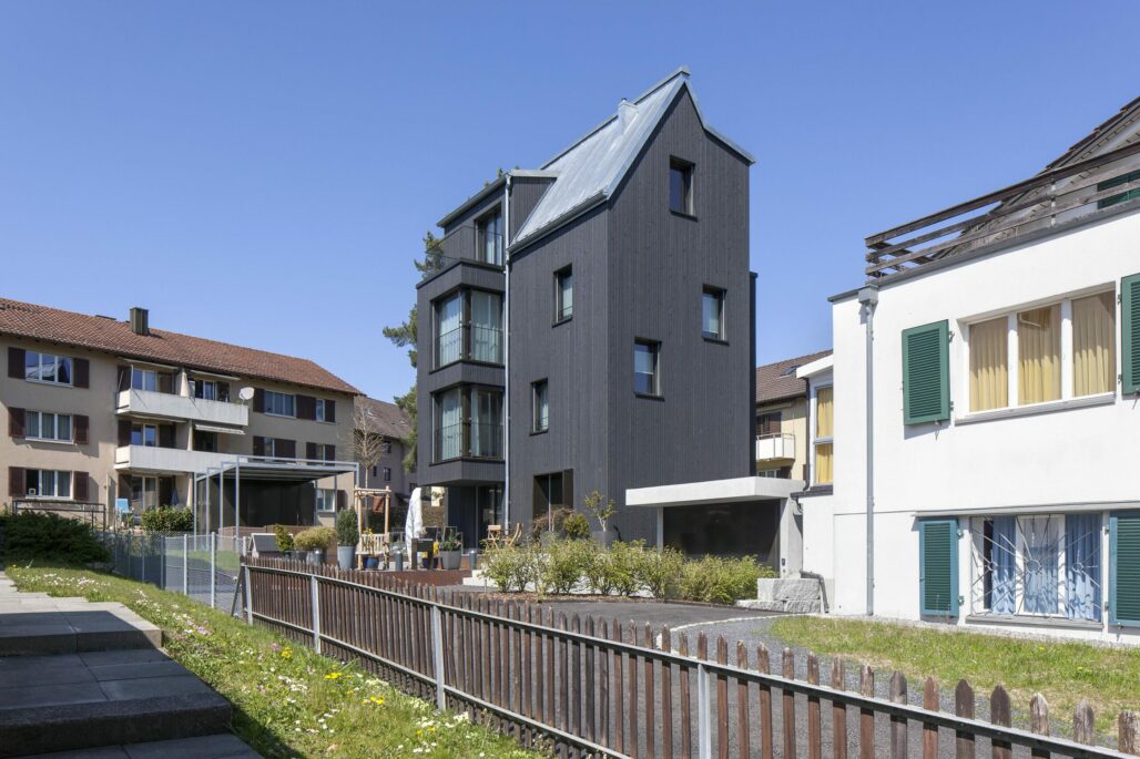 Im Zentrum von Steinhausen befindet sich die kleine Bauparzelle in der Wohnzone W3. Deren Zonenbestimmungen ermöglichen eine dem Ort angemessene Dichte, die Grenzabstände reduzieren jedoch bei dieser kleinen Parzelle die bebaubare Fläche stark.