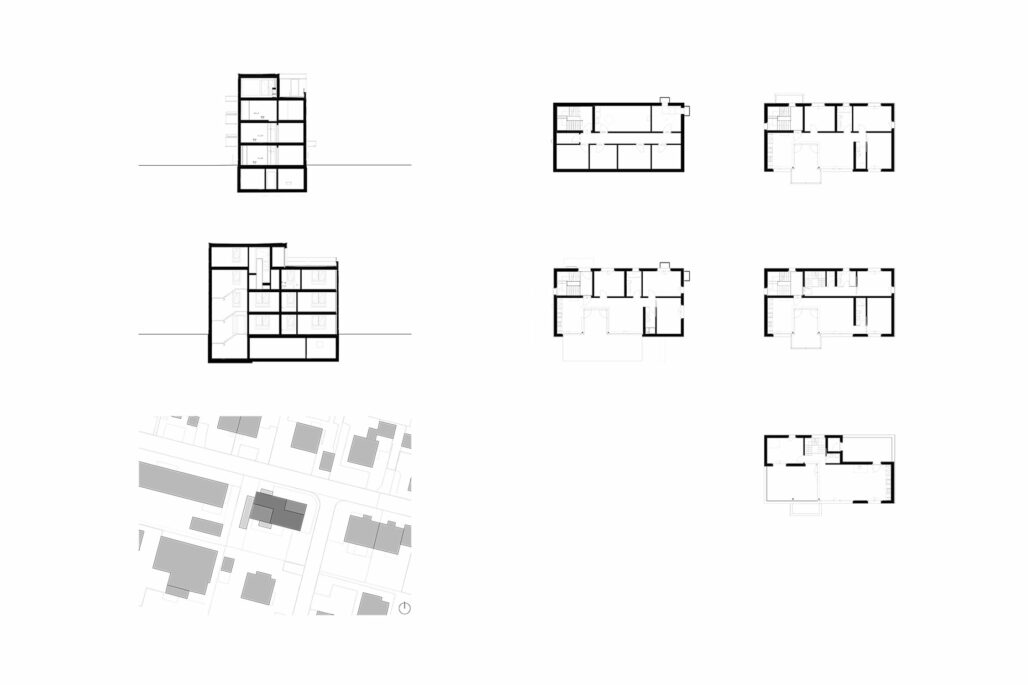 Die baurechtlichen maximalen Grundmasse erlaubten pro Geschoss eine Wohnfläche von ca. 93 m2. Um die eingangs genannten Ziele zu erreichen musste auf dieser Fläche eine 4.5 Zimmer-Wohnung projektiert werden. Die projektierten Wohnungsgrundrisse benötigen keine Erschliessungsfläche und erhalten dadurch normalgrosse nutzungsneutrale Zimmer. Die räumliche Wahrnehmung des Küchen-, Ess- und Wohnbereiches wird durch die eingezogene Loggia sowie Schiebetüren vergrössert. Die «Grösse» der Wohnung misst sich hier nicht in der effektiven Fläche, sondern in der räumlichen Qualität der ganzen Wohnung. Die Wohnfläche wurde zusätzlich durch seine Holzbauweise und folglich schlanken Aussenwände optimiert.