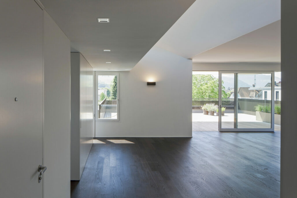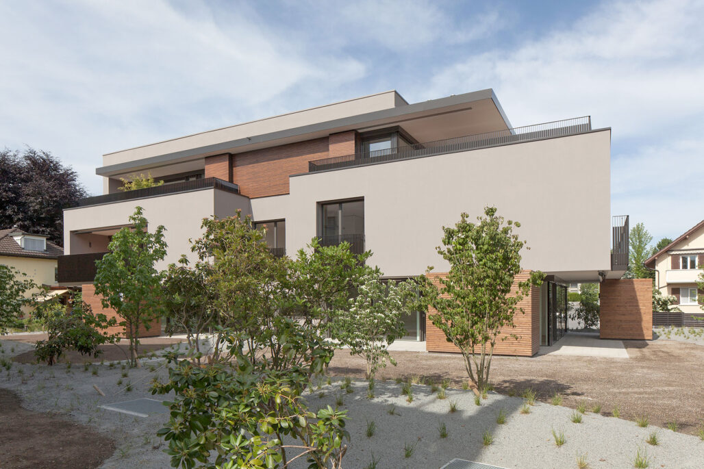 Im zentrumsnahen und ruhigen Wohnquartier projektierte der Architekt Jürg Moser aus Zürich ein 5-Familienhaus mit grosszügigen Wohneinheiten. Durch die Raumkonzeption sind die Wohnungen individuell ausgerichtet und in ihrer Ausrichtung zum Aussenraum voneinander entflochten. Mit der sorgfältigen konstruktiven Umsetzung des Entwurfes entsteht hochwertiger Wohnraum in Baar.