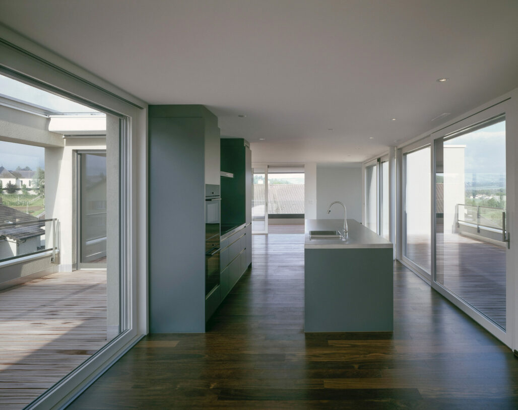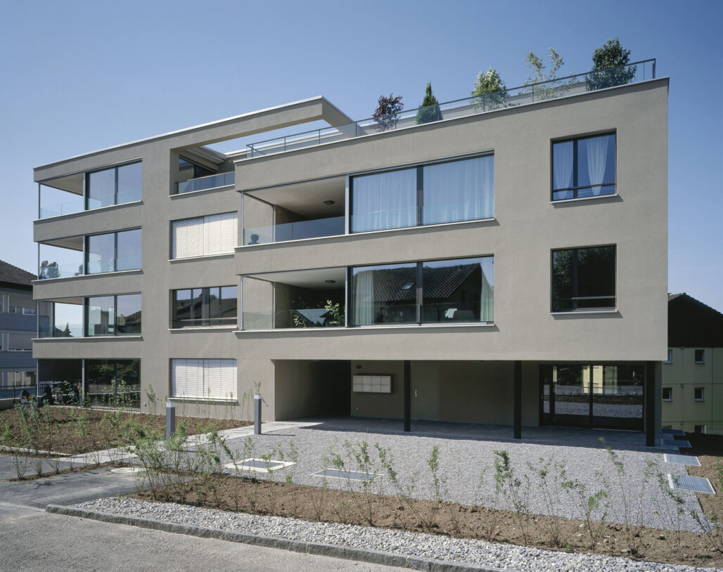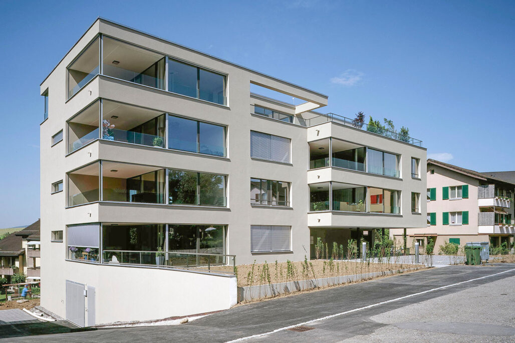Das Mehrfamilienhaus ersetzt ein älteres Gebäude aus dem Jahre 1962. Die im Stockwerkeigentum verkauften Wohnungen zeichnen sich alle durch einen grosszügigen Schnitt und eine gute Besonnung von Südwesten her aus. Der beheizte Wohnraum wird um eine geräumige Loggia ergänzt. Umlaufend Stoffmarkisen als Beschattungseinrichtung bewirken, dass die Loggien räumlich als Vergrösserung der Wohnzimmerbereich erlebt werden. Sämtliche Wohnungen sind um ein von Süden nach Norden durchgehendes Wohnzimmer organisiert. Die neuen Eigentümer teilen sich im Erdgeschoss einen Gemeinschaftsraum, welchen sie auch als sogenanntes Hotelzimmer für Gäste nutzen können. Die zurückhaltende Materialisierung fügt das Gebäude in die sehr heterogene Umgebung ein, ohne dass es seine Eigenständigkeit verliert. Das Gebäude ist MINERGIE zertifiziert.