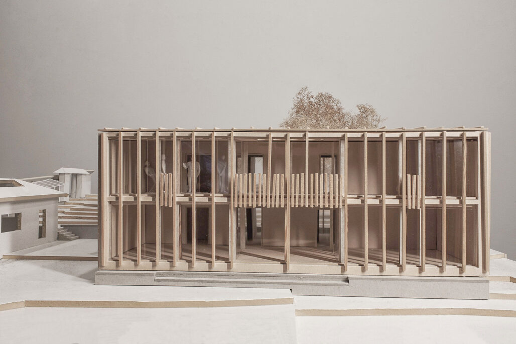 In einer historischen Gartenanlage sollte ein Wohngebäude Teile der bestehenden Gewächshäuser ersetzen. Das einfache Volumen und die auf einem Raster basierende Gebäudestruktur thematisiert die Typologie des traditionellen Glashauses.