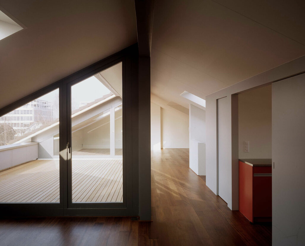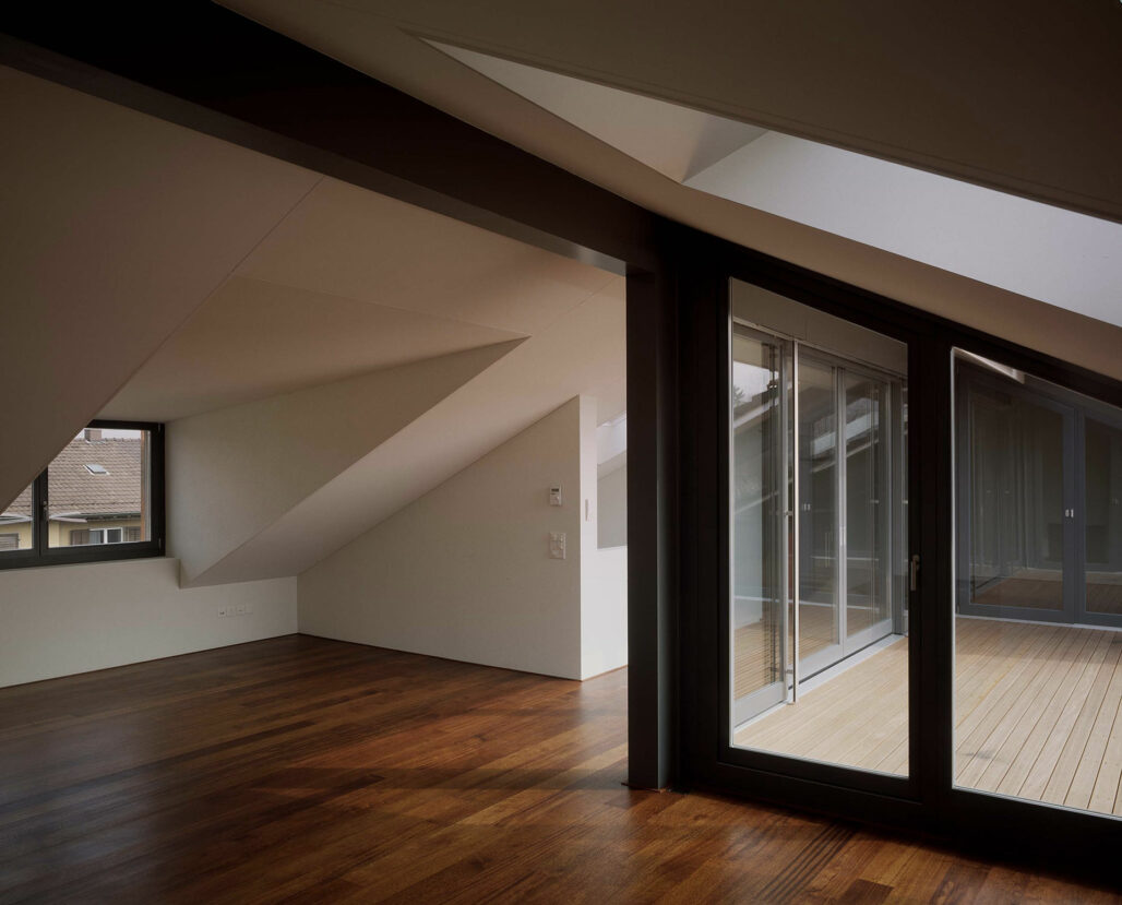 Das Mehrfamilienhaus (Baujahr 1942) mit den damals üblichen 3 1/2 Zi Wohnungs-Grundrissen wurde einer Totalsanierung unterzogen und den heutigen Bedürfnissen angepasst. Die Sanitär und Elektroinstallationen, die Fenster und der gesamte Innenausbau sowie die Umgebung wurden komplett erneuert. Anstelle des ursprünglichen Estrichs wurde eine grosszügige Atikawohnung mit einer in die Dachfläche integrierten Terrasse realisiert. Mit vorfarbrizierten Dachelementen wurde die Bauzeit minimiert, so dass die Emissionen auf die Nachbarhäuser und die zum Teil bereits bewohnten darunterliegenden Wohnungen möglichst geringgehalten werden konnten. Ein gelungenes Beispiel für die Aufwertung und Verdichtung von grundsätzlich guter Bausubstanz aus der ersten Hälfte des 20. Jahrhunderts im innerstädtischen Bereich.