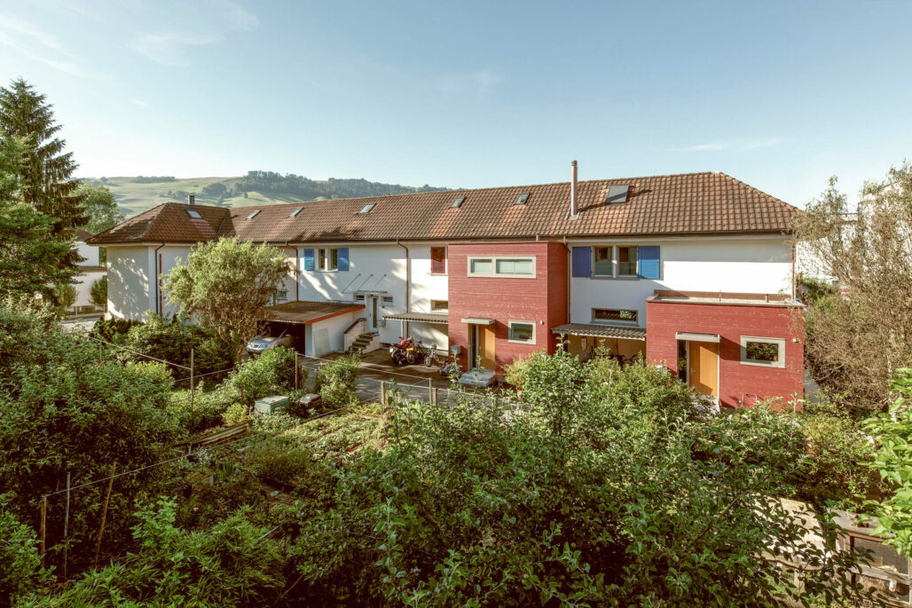 Die vom Zuger Bauunternehmer und Architekten Heinrich Peikert erstellte und ursprünglich flach gedeckte Zeile an der Göblistrasse ist im Inventar schützenswerter Bauten im Kanton Zug und ein baulicher Zeuge der frühen Moderne der Zwischenkriegszeit. Das bescheidene Raumprogramm des Bestandes wurde insbesondere um einen angemessenen Eingangsbereich und zeitgemässe Nasszellen erweitert. Vom ursprünglichen Konzept, welches Anbauten an allen Reihenhäusern umfasst, wurde nur ein Teil realisiert. Die mit roter Holzschalung verkleideten Körper setzen sich deutlich lesbar von den historischen Baukörpern ab.
