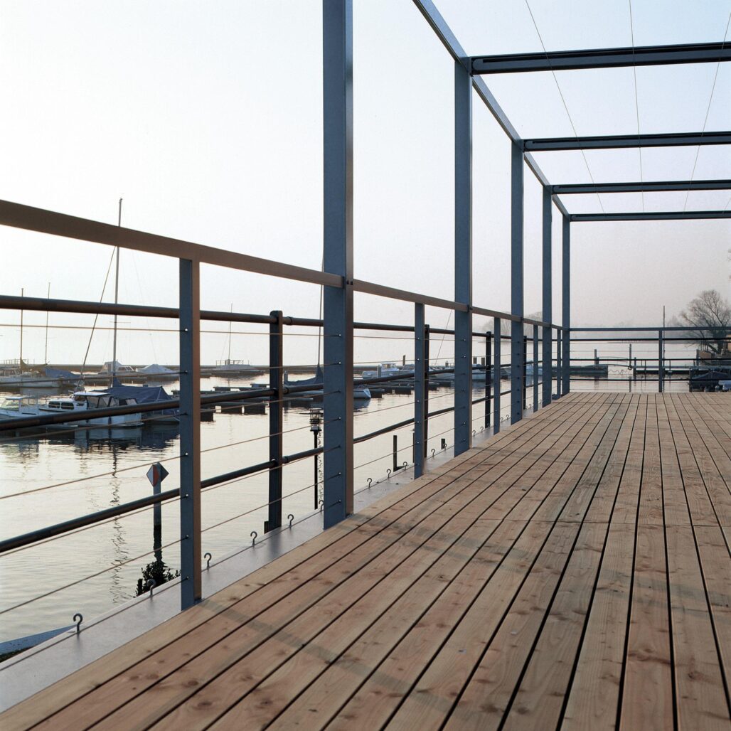 Das denkmalgeschützte Bootshaus wurde 1937 von Architekten Walter F. Willhelm als typischer Vertreter des "neuen Bauens" mit einer Sichtbetonfassade erstellt. Die Sanierung der Terrasse mit neuem Sonnenschutz, einer Absturzsicherung und einem neuen Holzboden und die punktuellen Eingriffe im bestehenden Gebäude erfolgten in enger Zusammenarbeit mit der Denkmalpflege.